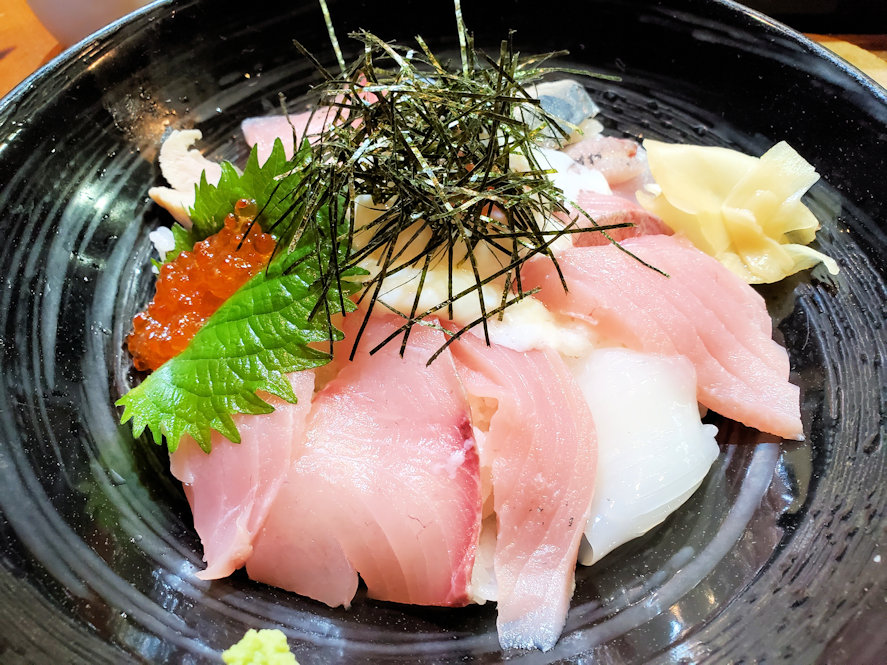 2021年09月06日 「魚たつ江戸町店」で海鮮丼 長崎市内出島の近くにある海鮮料理の店です。定食類や寿司がメインですが、海鮮丼を注文しました。魚がどっさりと乗った海鮮丼とアラ汁のセット。ボリュームたっぷりですが、これで値段は900円ぽっきり。安い・・・。海鮮丼に専用の醤油をつけて、そこに温泉卵を潰して食べる。そこには未知の美味しさが・・・。お奨め度★★★★ 「B級グルメ」カテゴリの最新記事 タグ :#九州#長崎#海鮮丼 < 前の記事次の記事 > コメント コメントフォーム 名前 コメント 記事の評価 リセット リセット 顔 星 情報を記憶 コメントを投稿する
