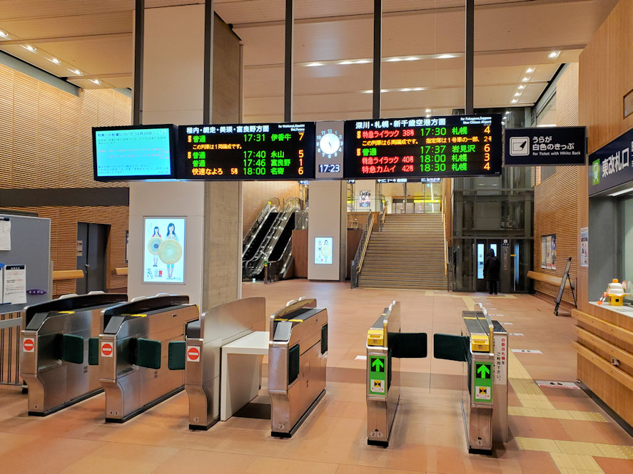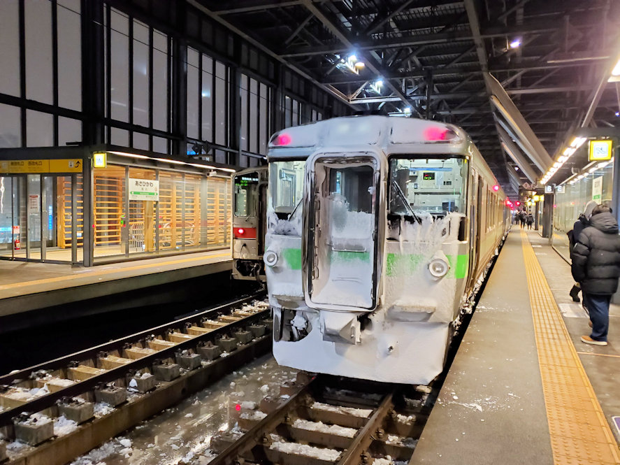岩見沢発1538の旭川行きに乗る。北海道の夜は早い。午後3時を過ぎるともう辺りは暗くなりはじめ、4時になると夜の雰囲気になる。旭川には午後5時過ぎに到着。年末の旭川市内は雪国の雰囲気に溢れていた。