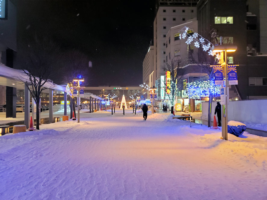 旭川には午後5時過ぎに到着。年末の旭川市内は雪国の雰囲気に溢れていた。