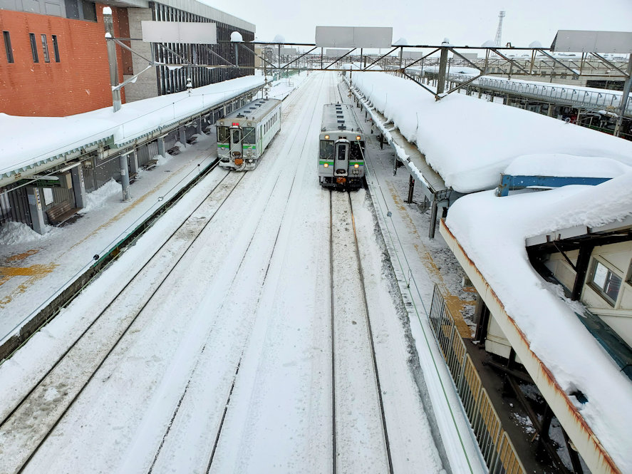 約40分で岩見沢に到着。いつもながら岩見沢は大雪の中。札幌は晴れていても岩見沢が大雪というのは、いつものことである。