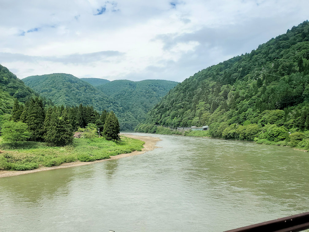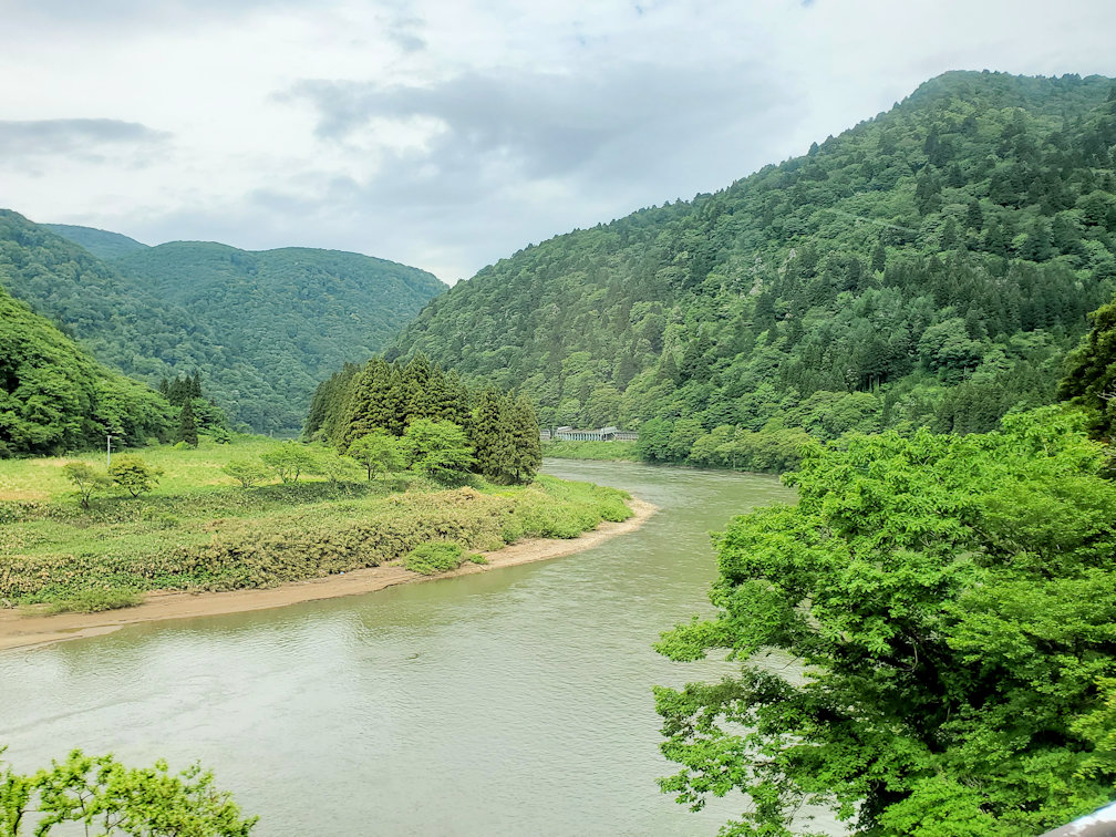 この路線も既に何度か乗ったが、これまでは秋や冬に乗ることが多かった。今回のような初夏に乗るのもまた悪くないな。新緑と渓谷、そして水の張った水田が美しいと思う。
