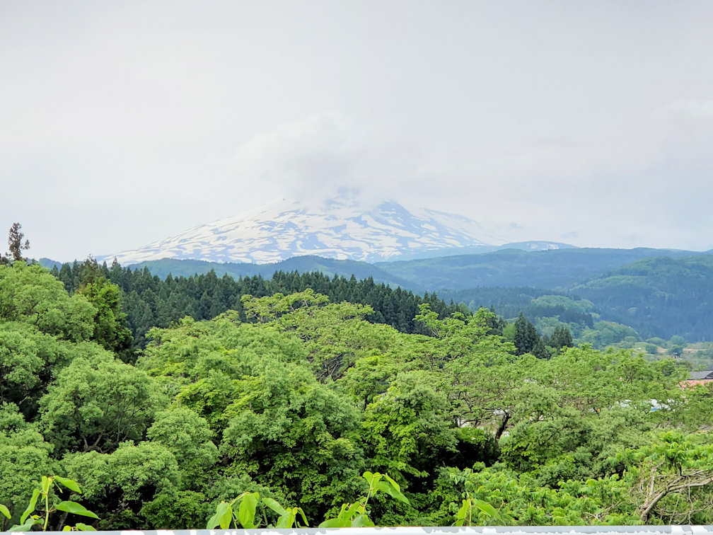 まずは0746発の矢島行きに乗る。約23kmを約40分で走破する。田植え真っ盛りの水田と、その向こうに見える鳥海山が美しい田園路線である。