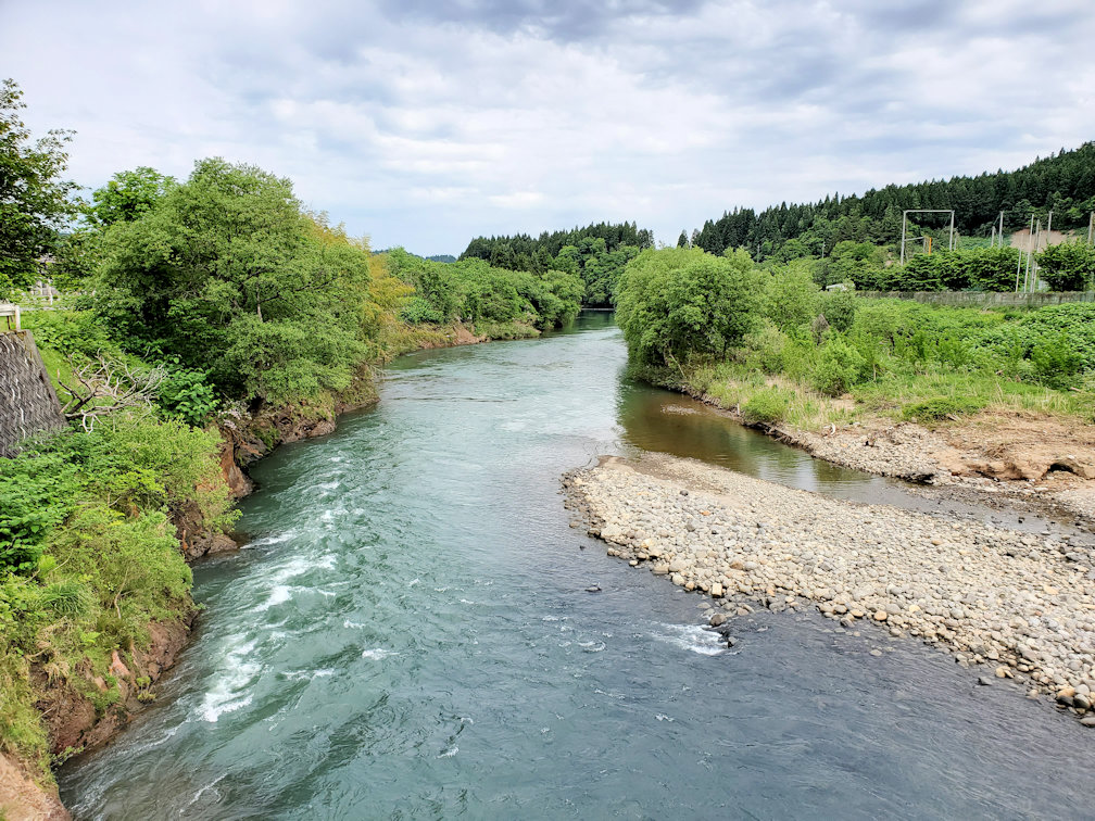 終点の矢島駅では待ち時間が少しあったので、駅近くを散策してみた。駅から20分ほど歩いた所に子吉川の橋梁があり、瑞々しい川の流れと鳥海山の景観を楽しめる。
