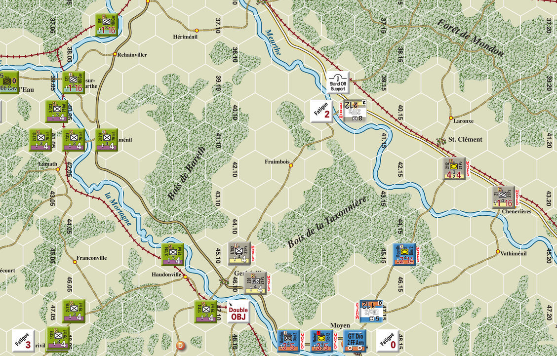 天候は晴れになった。マップ西端から米軍の第35歩兵師団が登場する。第35歩兵師団はドイツ軍第559歩兵師団と交戦し、これを撃退。これにより米第4機甲師団への連絡線を回復した。さらに米第4機甲師団CCBが復活してドイツ第559歩兵師団の補給段列を攻撃し、これを撃破して第559歩兵師団の連絡線を遮断した。