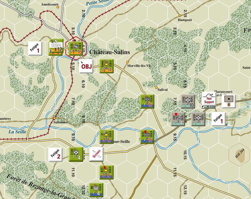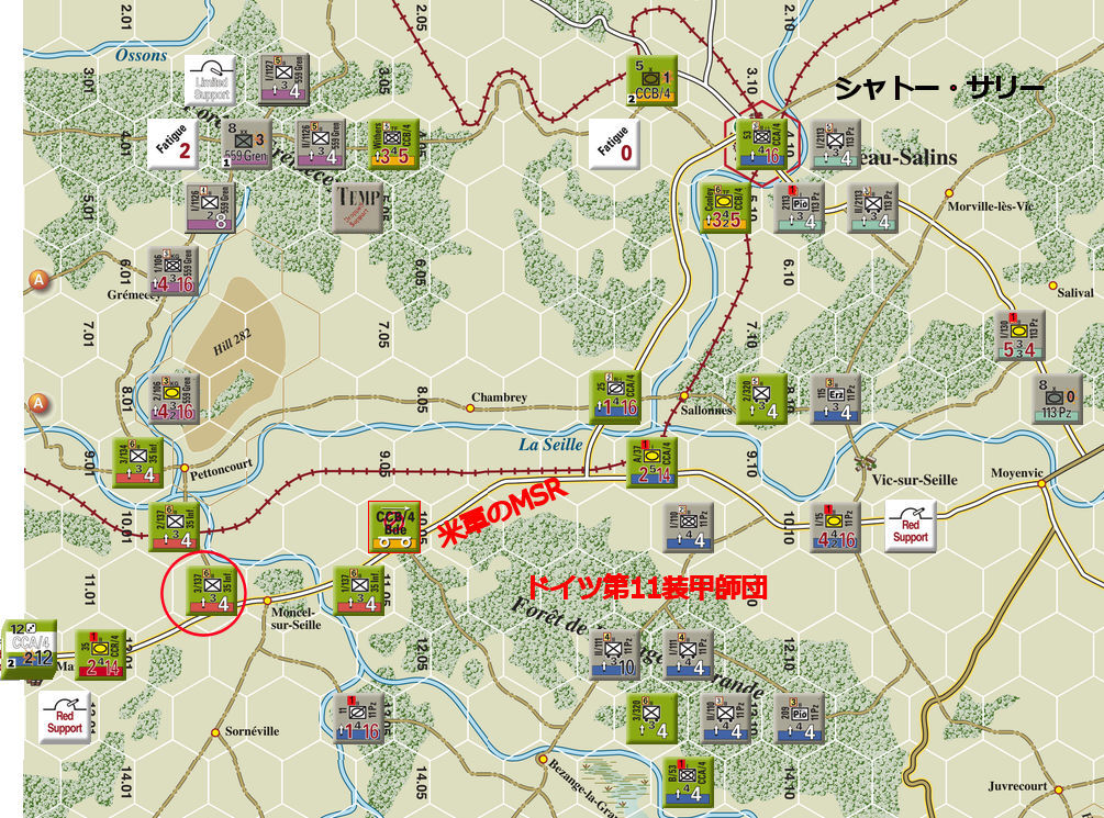 米軍がCCAの活性化に失敗したため、ドイツ軍が引き続き第113装甲旅団を活性化させる。要域シャトーサリーを攻撃するも、米軍の守りが固く、陥落させるには至らない。。