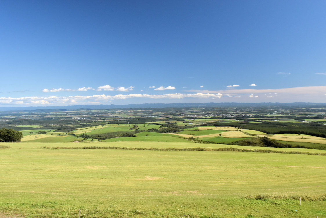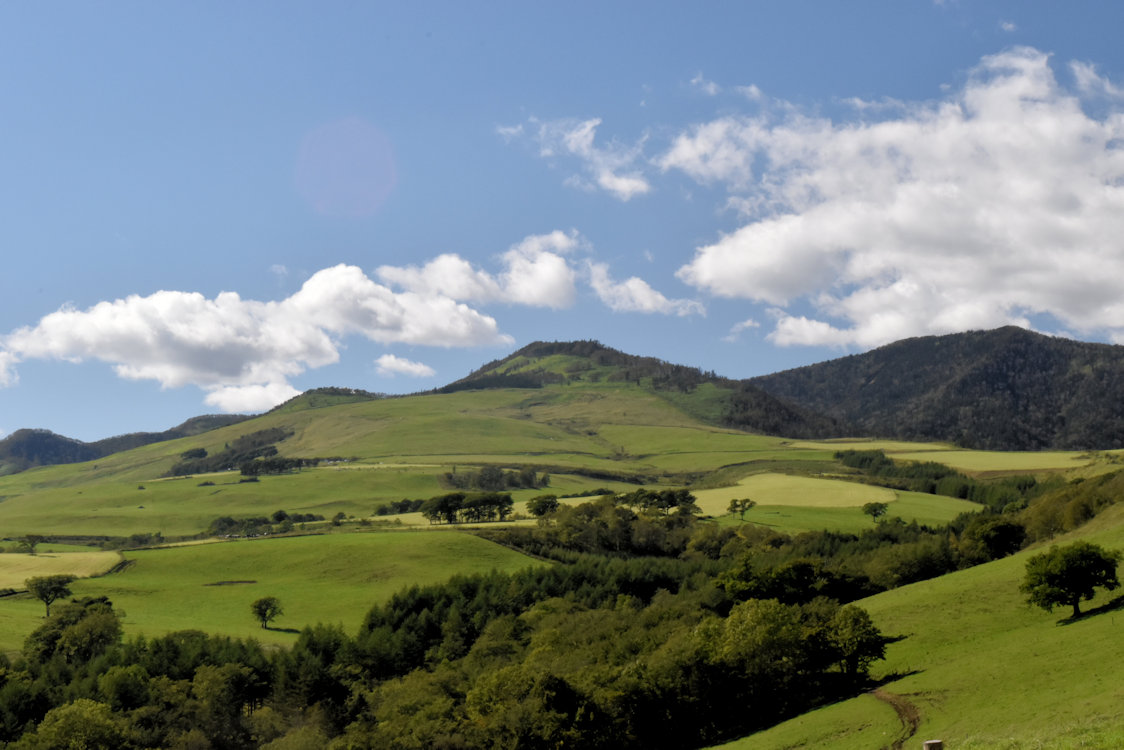 このナイタイ高原牧場。晴天に恵まれば素晴らしい景観に出会えるのですが、残念ながらそこは山岳気候。いつも雲が垂れ込めていてなかなか晴れません。それでも偶に晴れると、以下のような素晴らしい景観に出会えます。