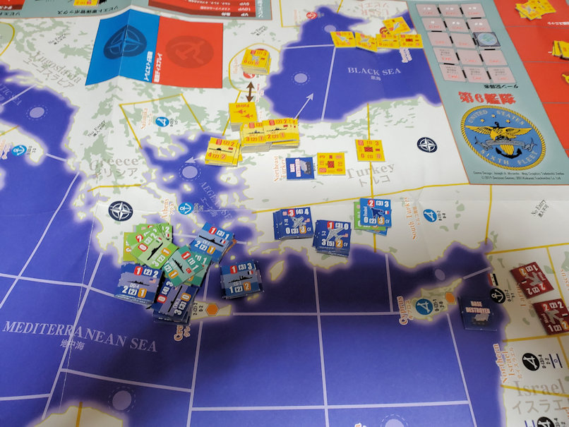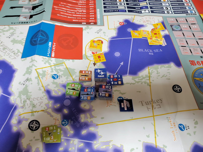ソ連軍は増援を得てトルコ海峡の守りを固める。また哨戒機をトルコ海峡上空に飛ばして艦隊上空の守りを固める。NATO軍は増援部隊を得て東へ向けて移動を開始する。7Turn