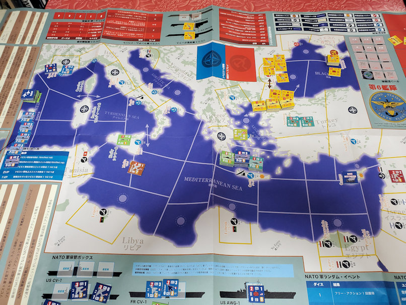 前回に比べるとまともな展開になったと思う。イスタンブールを守るトルコ軍が意外と強敵であることがわかった。ソ連軍地上部隊だけではトルコ軍を排除できず、航空攻撃だとリスクが高い。黒海側からの艦砲射撃が一番確実だが、そのためにはソ連艦隊主力を黒海側に配置する必要がある。そうなるとソ連軍による地中海方面への攻勢が困難になる。まあソ連軍としてはNATO軍が集結して「アルマダ」を作る前に艦隊決戦を挑むという手もあるが・・・。もう少しやり込んでみないと断言はできないが、やや単調なゲームにも思える。