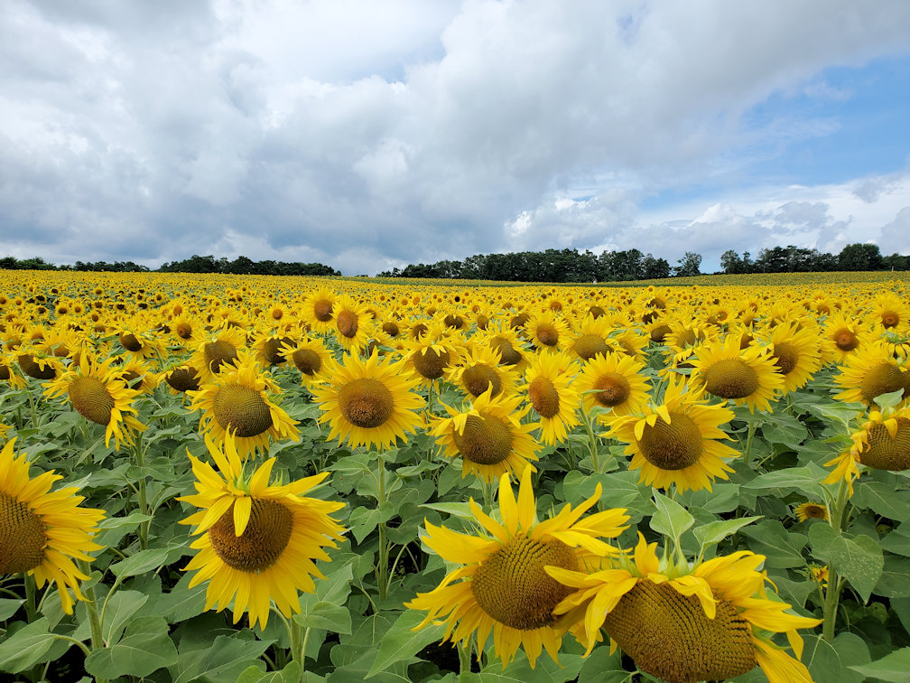 さらに国道を南下し、深川市内に入ると少し西にそれて「北竜町ひまわりの里」についたのは1000頃であった。ここは広大な敷地にひまわりが咲き乱れる景勝地である。