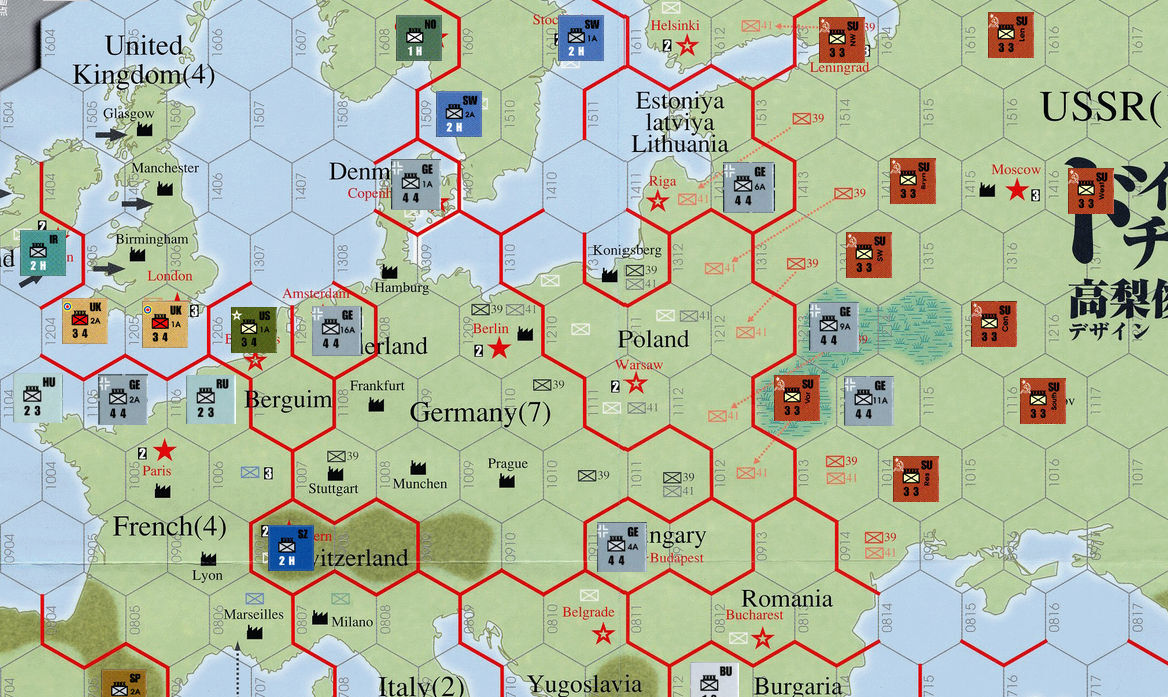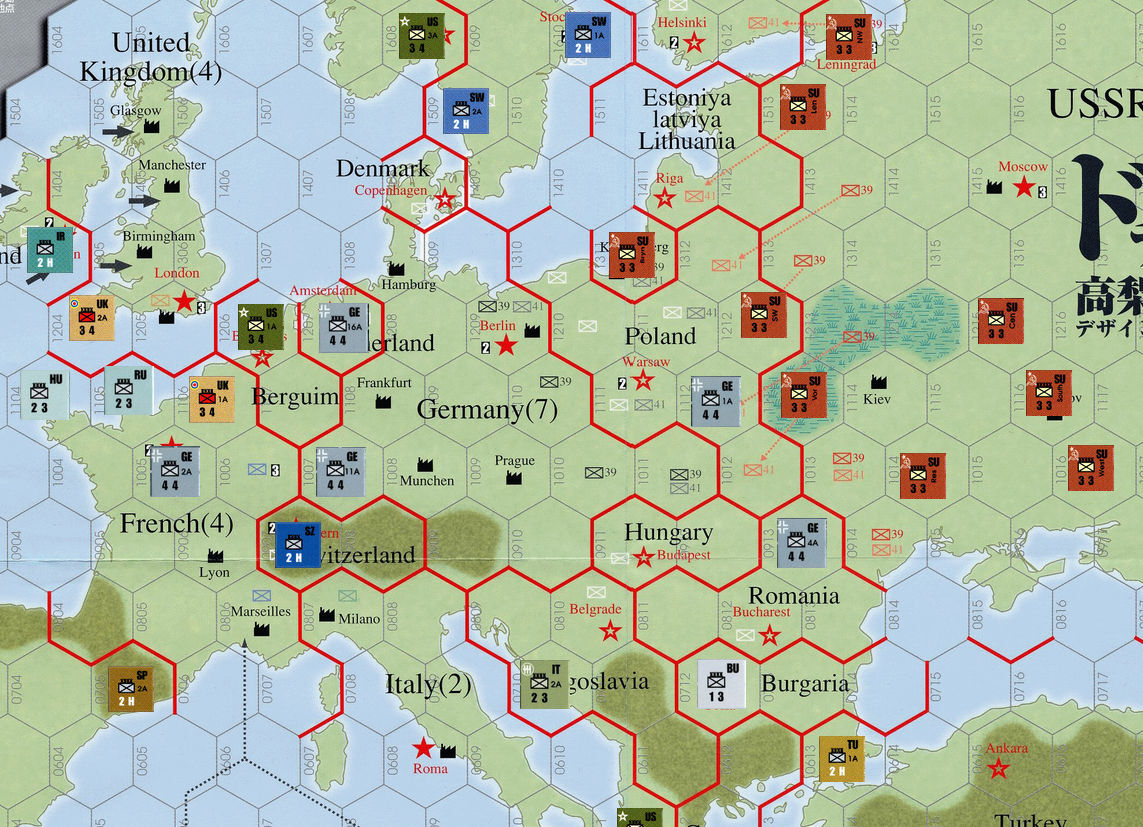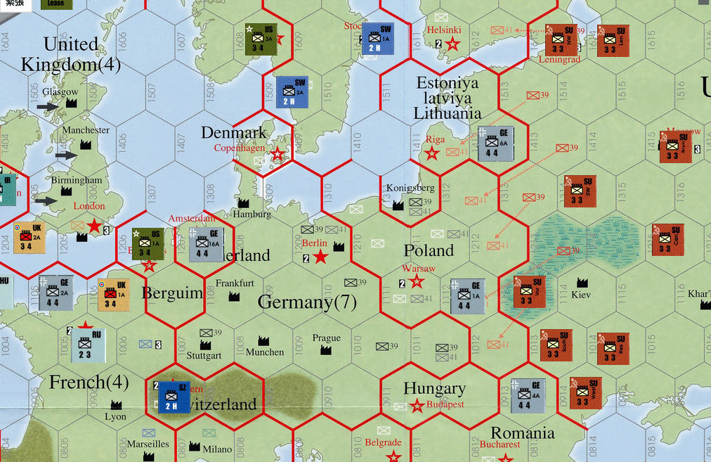閑話休題。本作のテーマはWW2の欧州戦線である。1Turnは実際の3ヶ月に相当し、1hexは約300km、1ユニットは軍~軍集団に相当する。航空部隊は抽象的に登場するが、海軍部隊はユニット化されていない。