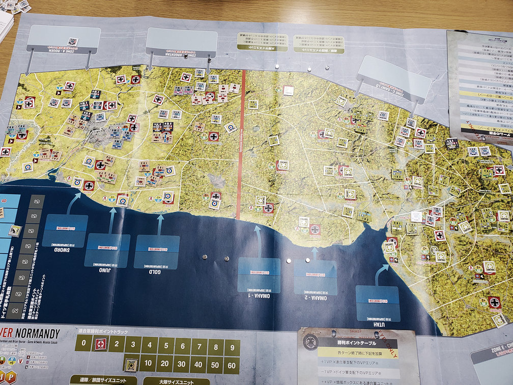 このTurnに連合軍は9VPを獲得し、ドイツ軍の獲得VPが3VPだったので、その差は6VP。累積VPはようやくプラス5VPになったが、勝利条件プラス30VPに達するのは絶望的な状況になってきた。