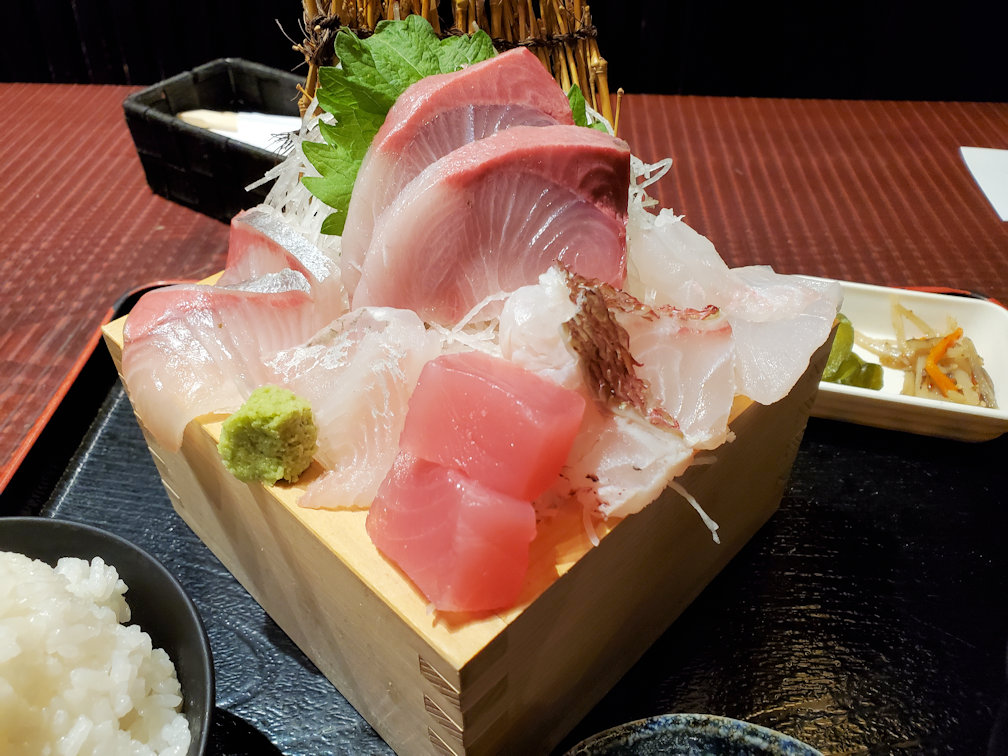 2023年07月04日 鹿児島中央駅「魚屋しげぞう」 鹿児島中央駅から徒歩5分ぐらいの場所にある魚料理の店です。今回はランチタイムに入っていました。刺身定食1,380円を注文。御飯は大盛りしました(大盛りは無料です)。魚も美味しかったですが、鹿児島風の甘口正油と一緒に食べる刺身の味は絶品。九州に来た時には、是非、この甘口正油を試してみて下さい。ただ、ご飯大盛りにしたのは、ちょっとやり過ぎたかな?。お奨め度★★★ 「B級グルメ」カテゴリの最新記事 < 前の記事次の記事 > コメント コメントフォーム 名前 コメント 記事の評価 リセット リセット 顔 星 情報を記憶 コメントを投稿する