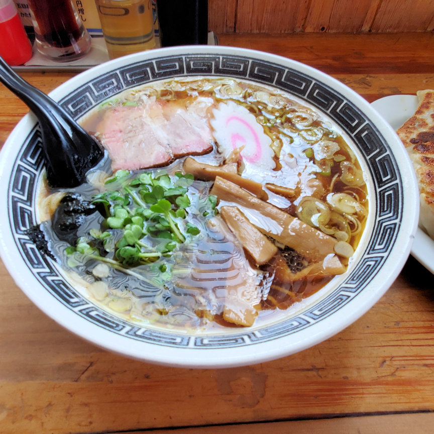 醤油ラーメンと餃子を注文しました。