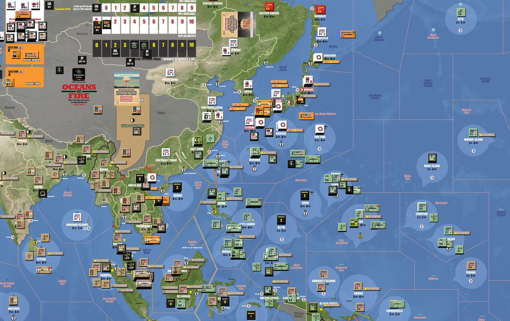 テーマは太平洋戦争で、3年8ヶ月に及ぶ大戦争を、1Turn=半年のスケールで再現する。