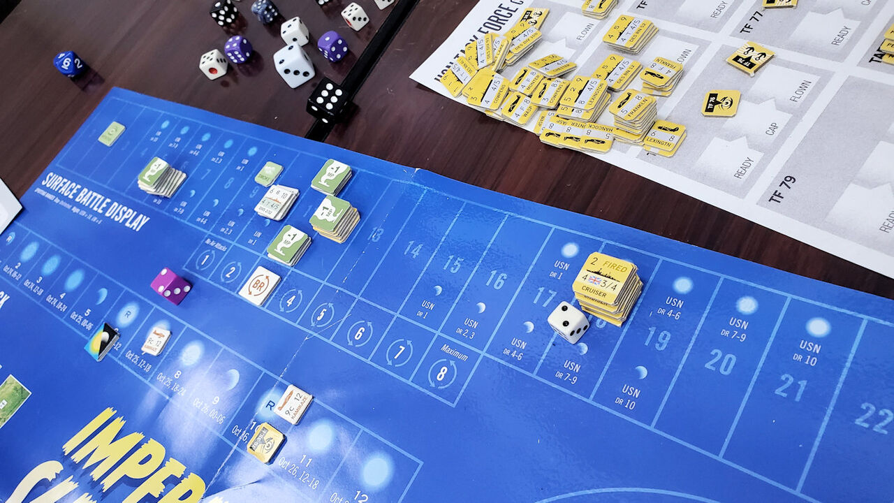 そういった点を除けば結構楽しめるゲームだと思った。心持ち日本の航空攻撃力や酸素魚雷の威力が史実よりも強力なように思われるフシはあるが、逆に史実の米軍がラッキー過ぎたという見方もある。逆に砲撃戦能力は米軍の方が有利になっているので、栗田艦隊がオルデンドルフ部隊を打ち破ってレイテ湾に突入するのは相当困難なように思われる。ただし勝利条件の捻りが上手く、日本側にも十分に勝機はある。決して日本軍が一方的に叩きつぶされるだけのゲームではない。航空攻撃や水上戦の解決が少し手間だが、一方で戦闘シーンはゲーム上の「華」なので、ある程度手間をかけてプレイするのも悪くないと思う。