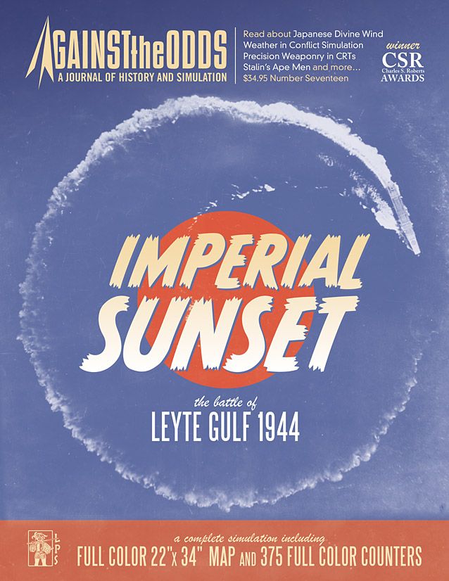 Imperial Sunset(以下、本作)は、ゲーム付雑誌であるAgainst the Odds誌の付録ゲームで、2006年に発売された作品だ。テーマはレイテ沖海戦。レイテ海戦のほぼ全体を1Hex=25海里、1Turn=6時間、1ユニット=巡洋艦以上1隻、駆逐艦以下数隻、航空機は10~30機程度というスケールで再現する。