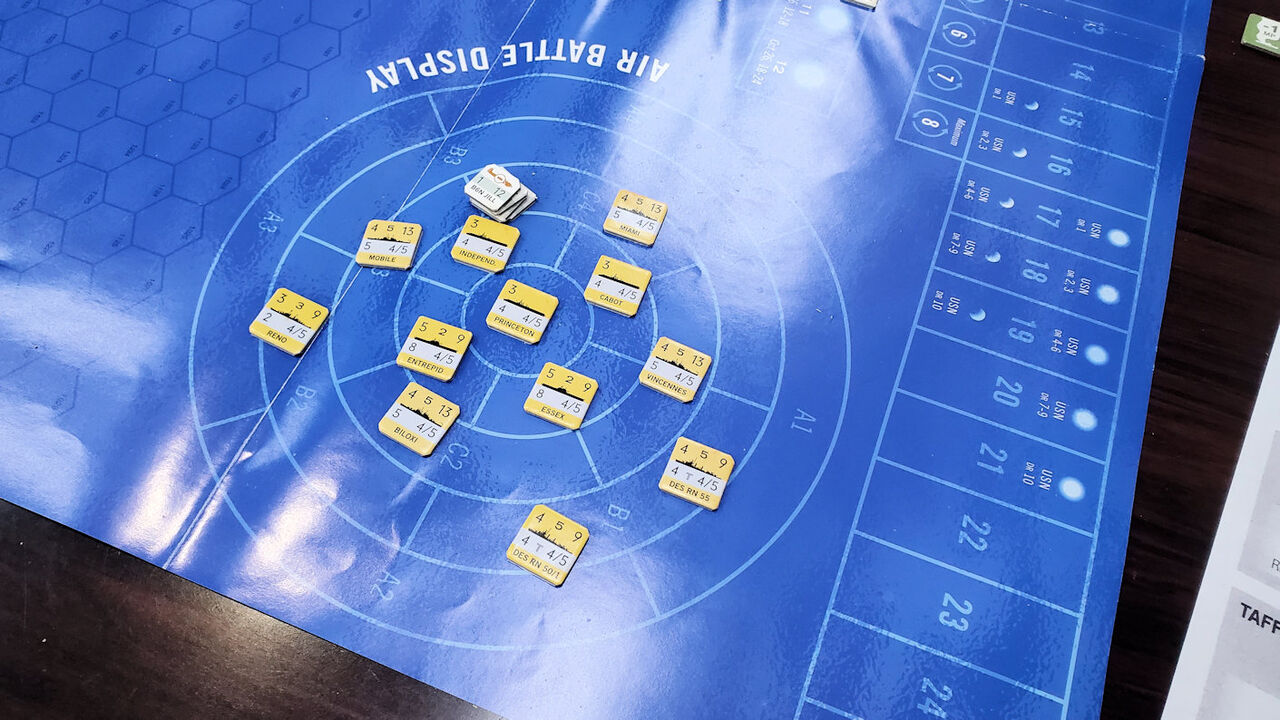 小沢艦隊について説明しておくと、米艦隊が小沢艦隊を発見した場合、60~80%の確率で「ブルズラン」を強制させられる。日本艦隊としては、史実通り小沢艦隊を囮にして米機動部隊を北に引き付けて、その間に栗田艦隊でレイテ湾突入を狙う作戦も成立する。そう考えると、日本側も色々と作戦を考える楽しみがあるゲームと言えよう。