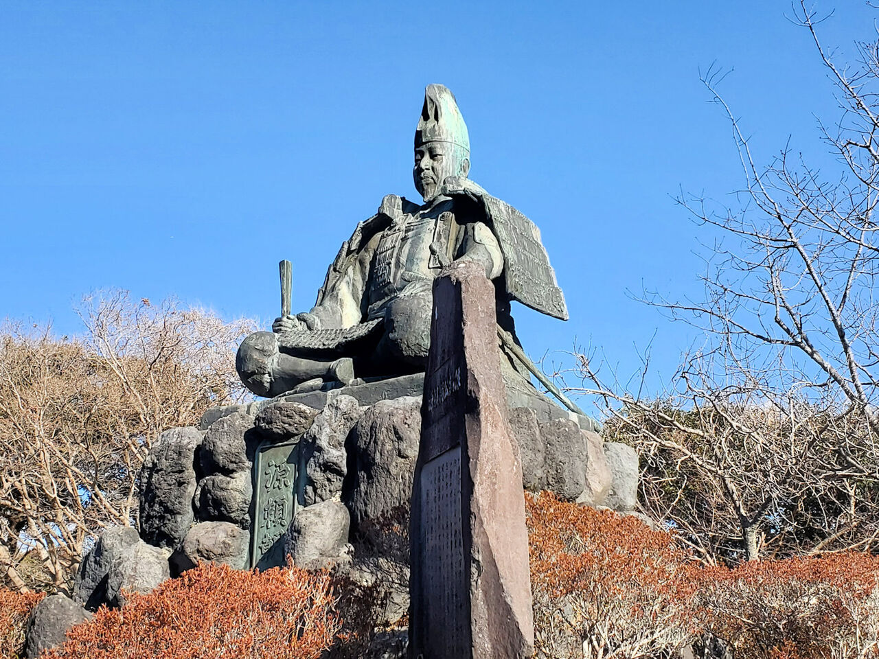 さらに歩くと源氏山公園になっていて、そこに源頼朝の像があります。源頼朝といえば、言わずもがな鎌倉幕府を興した人物です。