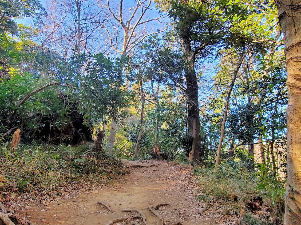 大仏切通の所まで来て一旦木段を降りていき、大仏トンネルの上を超えて向こう側に向かいます。