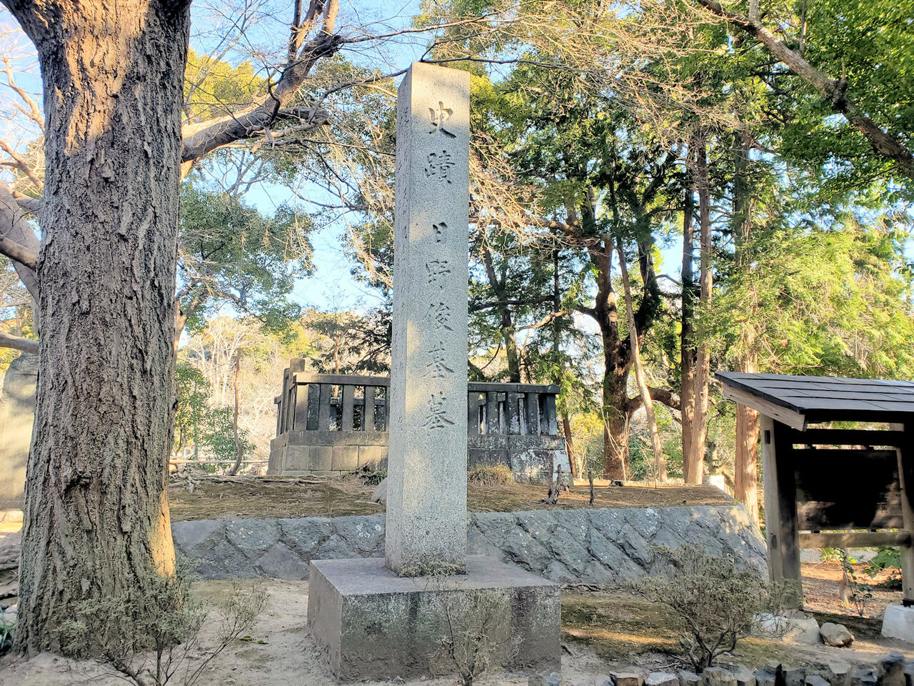 そこし歩くと日野俊基の墓があります。日野俊基は、鎌倉時代後期に後醍醐天皇と共に討幕運動に参加し、元弘の変で鎌倉幕府に捕らえられて処刑されたとされています。明治になって南朝が正当とされると、後醍醐天皇に付き従った日野俊基は忠臣とされ、彼を主祭神とする葛原岡神社が建立されたとのことです。そういえば「太平記」でも日野俊基は前半における主要な登場人物の1人でした。
