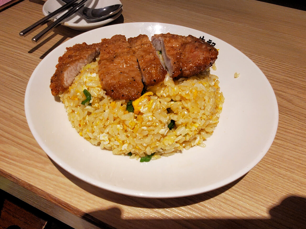 豚肉をとんかつ風にカラリと揚げたものをチャーハンに乗せて食べるというシンプルなメニューです。チャーハンの方はまあ普通でしたが、排骨が絶品。カリカリに揚げた豚肉がスパイシーに味付けされていて実に旨いです。