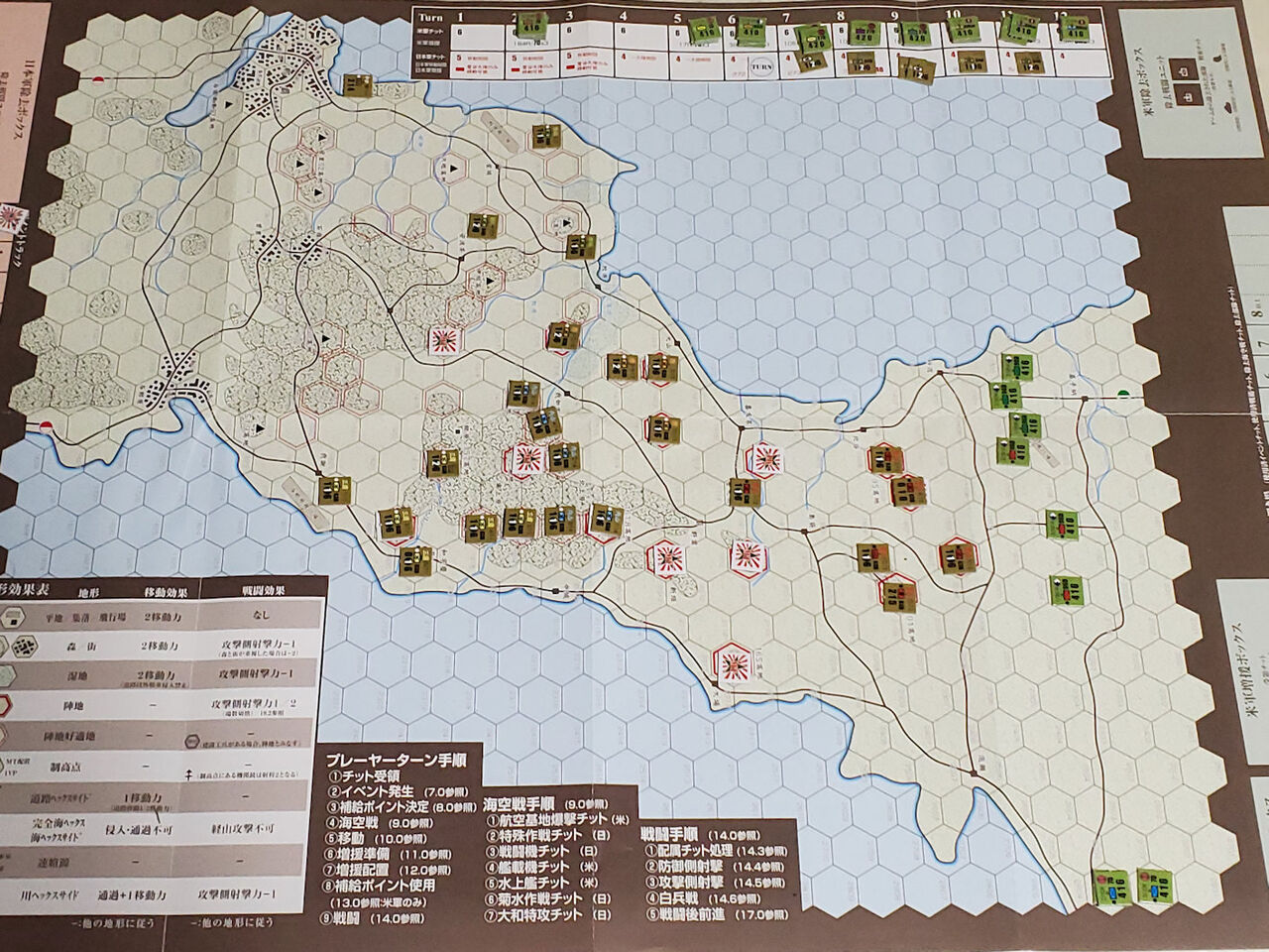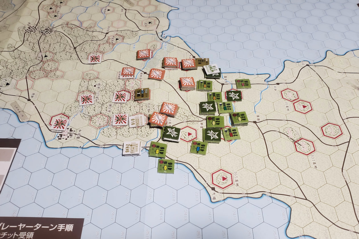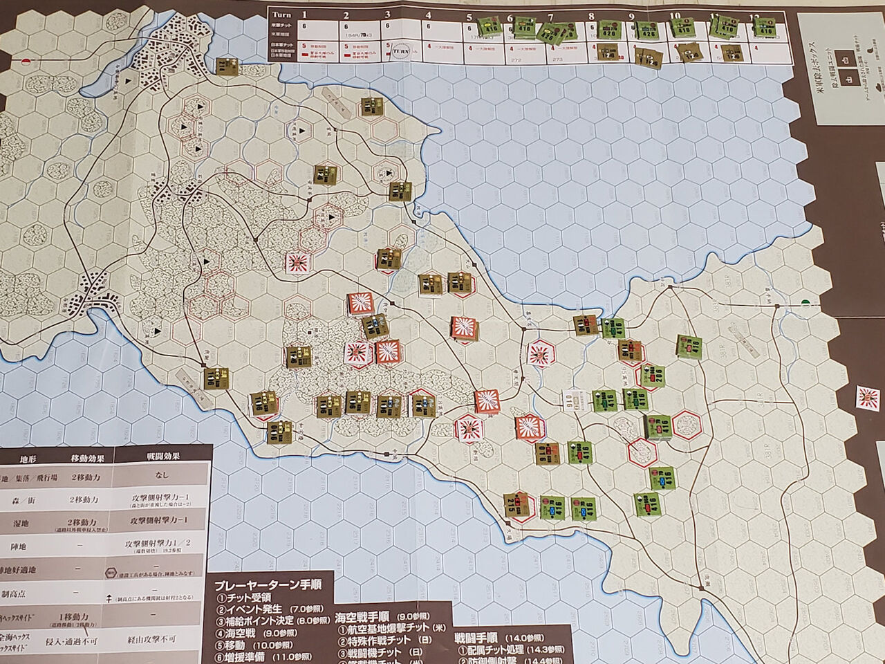 日本軍の菊水特攻作戦が成功し、日本軍が1VPを獲得した。一方米軍が大山付近の制高点を連続して2ヶ所制圧し、ついにVPチットを獲得した。