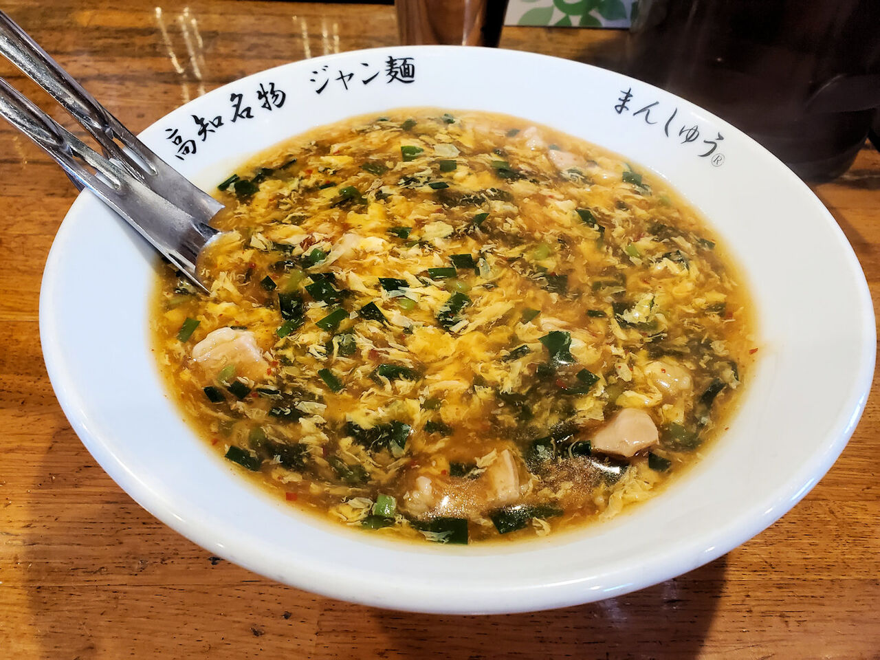 この「まんしゅう」はジャンメンという変わったラーメンが名物。一応ラーメンなのですが、スープがあんかけ風になっていてとろみがあります。ラーメンやスープがアツアツで、それをゆっくりと食べていくのが魅力。ラーメンとあんかけ風スープの不思議なマッチングが食欲をそそります。