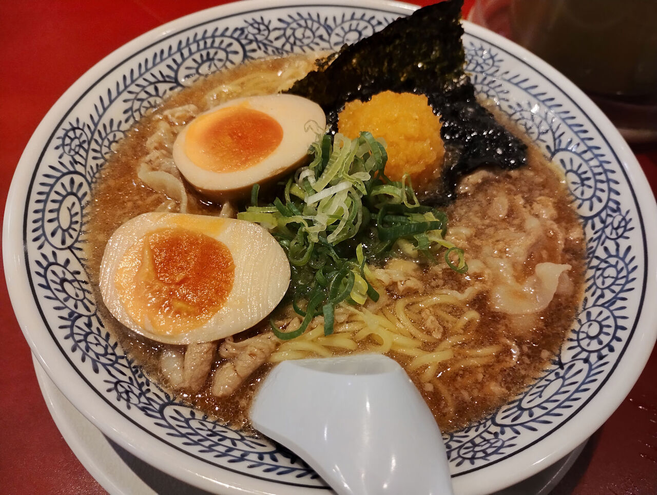まずスープ。丸源らしい“まろやか系熟成醤油”で、角のないコクと軽い香味油。最初の一口で舌に旨みが広がり、後味はすっきり。