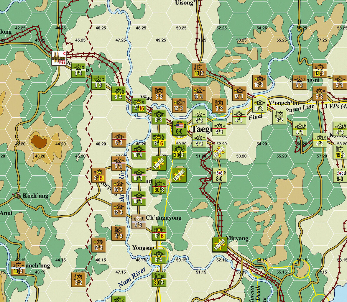 北に向かった部隊は、半島東岸地区に残った北朝鮮軍の背後を遮断すべく急速に北上する。交通の要衝であるYougju(栄州、C50.33)を移動モードで突進してきた米第24歩兵師団所属の戦車大隊が占領し、北朝鮮軍の背後を遮断する。