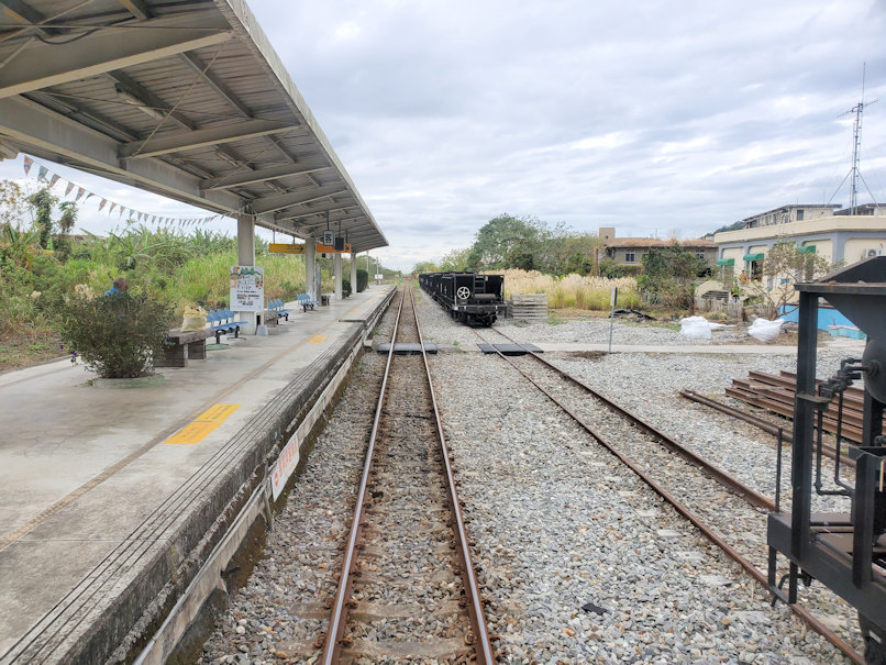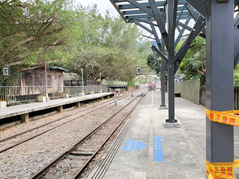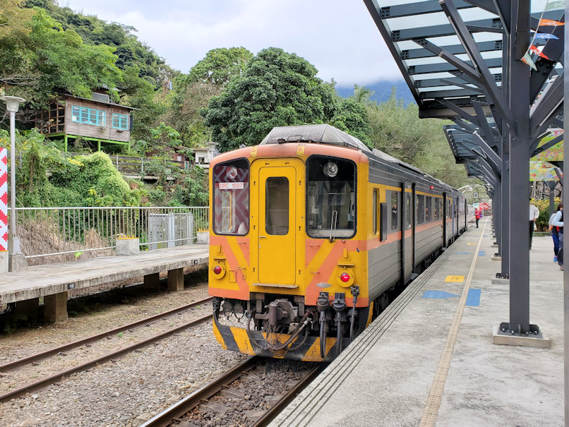 やがて山間部に入っていくと、山々の間に南国らしい植物が見られ、南方の風情を楽しめます。所々に台湾風の集落があるのも良し。途中駅で旧型客車を改良して売店化している風景もありました。