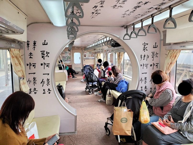 最初は六家と竹中の間を結ぶ六家線を乗り潰し後、いよいよ本命である内湾線に入っていきます。因みにその時乗った車両は2両編成。前車両が観光列車風になっていて、思わず「ラッキー」と思いました。