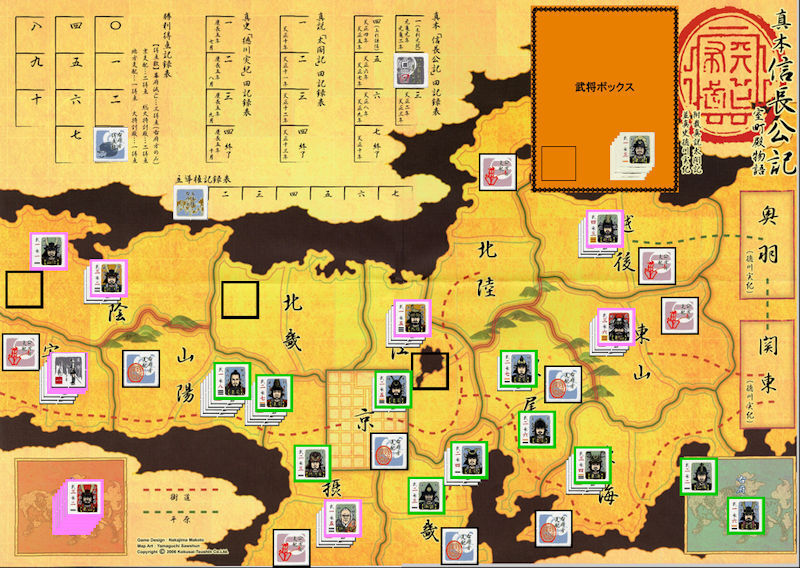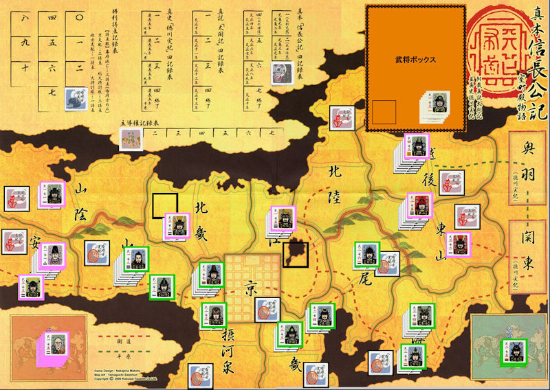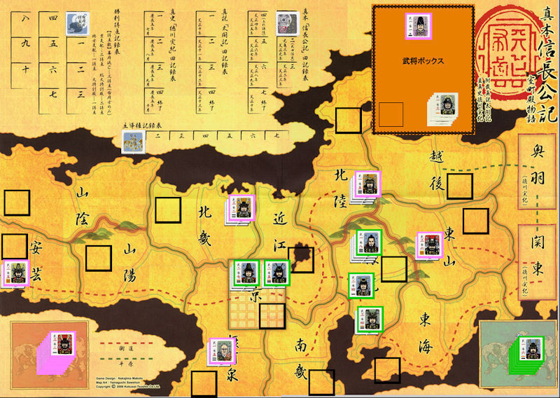 武田勝頼が東海へ進出してきたが、能力の劣る勝頼では、歴戦の家康に敵うはずもなかった。他の公方方武将も数に勝る右府方武将に足止めされ、身動きできなくなる。結局このTurn終了時に右府方のVPが10点を超えたため、右府方の勝利が確定した。