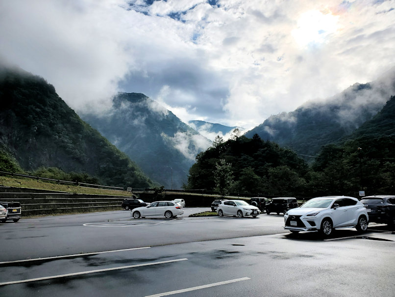 買ったばかりの新車を駆って、沢渡の駐車場に着いたのは朝8時頃でした。沢渡の駐車場に車を停めるのは11年ぶり(上高地に行くのも11年ぶり)で、その変貌ぶりに驚かされます。以前に来た時には舗装されていなかったような・・・。