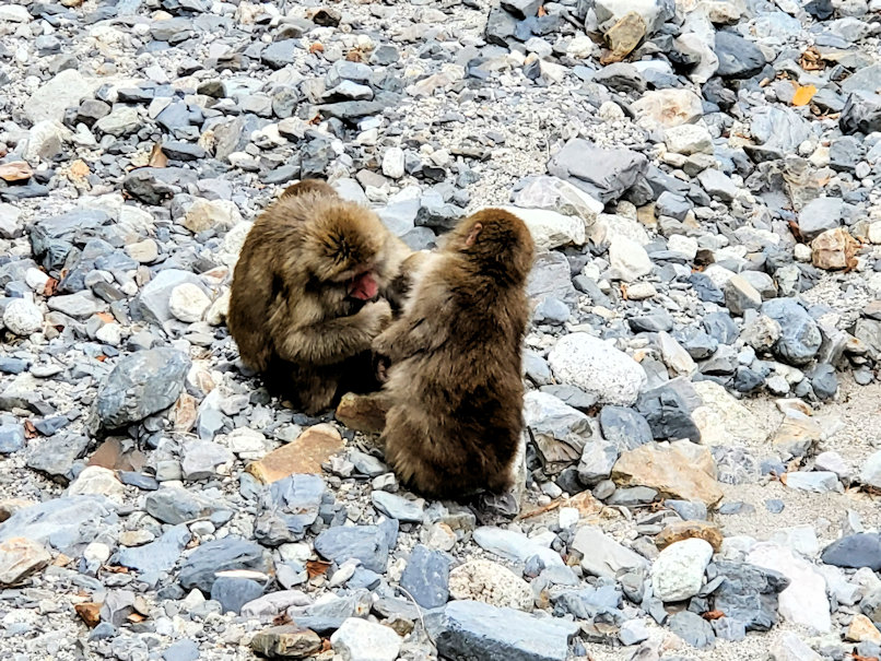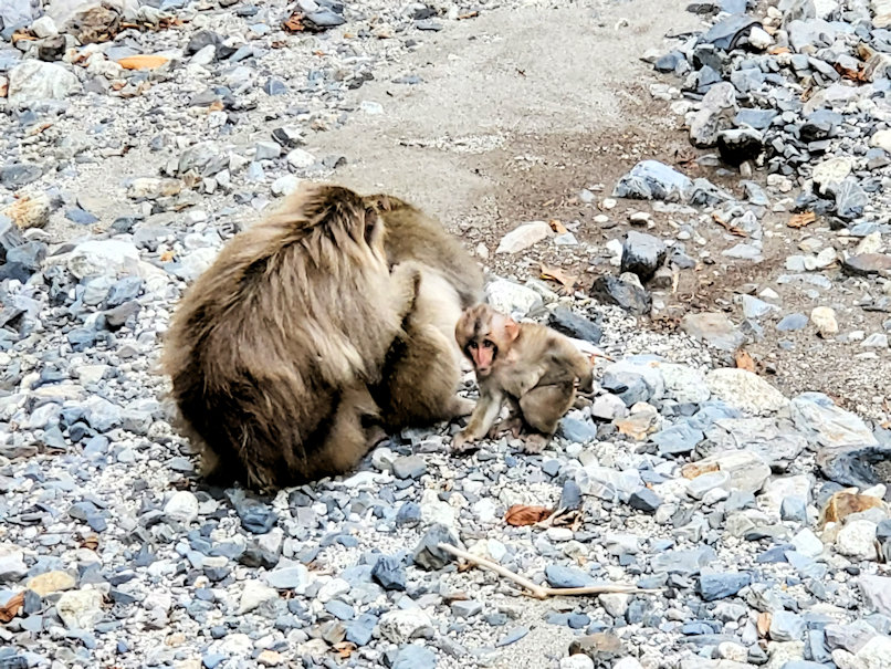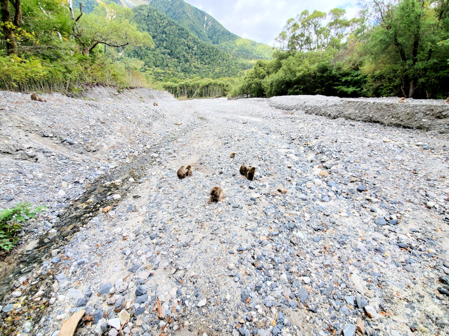 明神を出てすぐに白沢の出合。いきなり猿の集団がお出迎えです。一見すると愛らしくも見えますが、地元の人たちから見ると憎々しい存在のようで。宿に近づいた猿に対して、宿の人がエアガンを連射しているのが印象的でした。