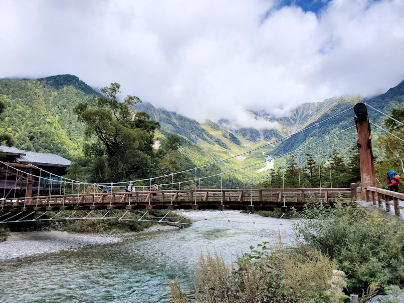 予定通り1時間ほど歩いて河童橋に到着。ここで少し早めの昼食としました。