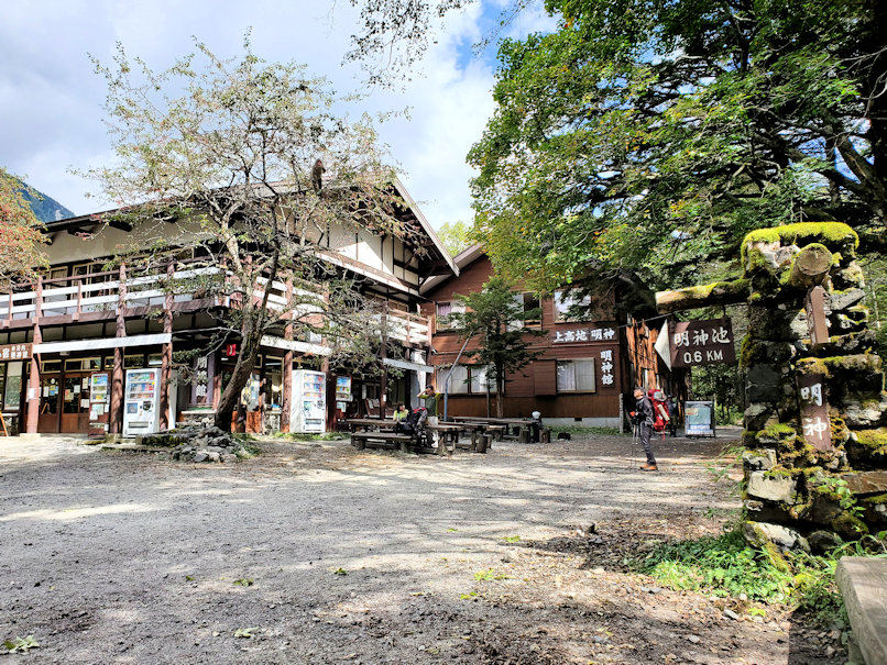 河童橋で腹一杯食べたので、少々体が重い。しかしここからが本番。重たい体と重たい荷物を担いでいざ奧上高地へ。まずは徒歩1時間の明神へ向かいます。上高地~明神はまだ登山者よりも観光客の方が多い一般観光ルートです。