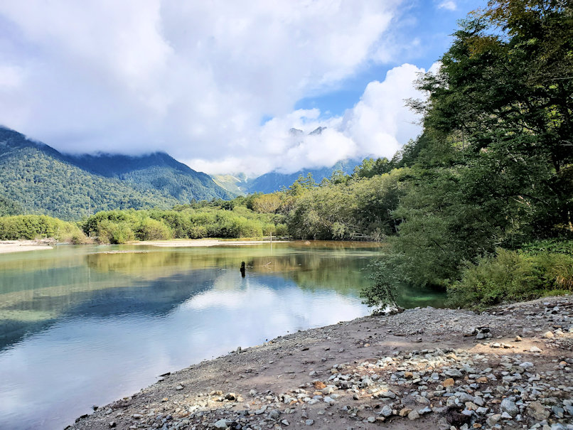 09:00発のシャトルバスに乗って上高地へ。今日は時間があるので上高地から1つ手前の大正池で下車しました。大正池からは北アルプス唯一の活火山である焼岳の姿が美しいです。