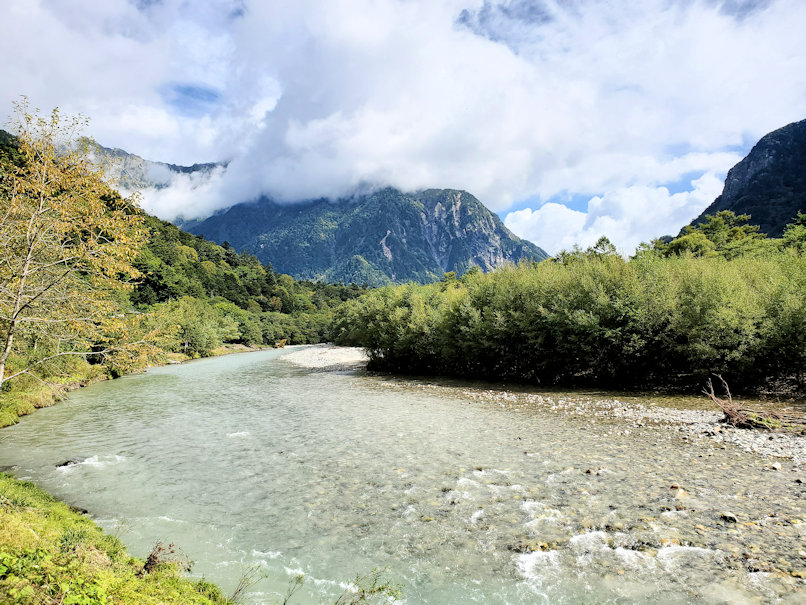 ちなみに白沢の出合からは右手に山道が出ています。それは徳本峠へ進む道。霞沢岳や新島々へ出る街道へつながっています。いつかは歩いてみたい登山道ですが、今回は梓川に沿って先を急ぎます。
