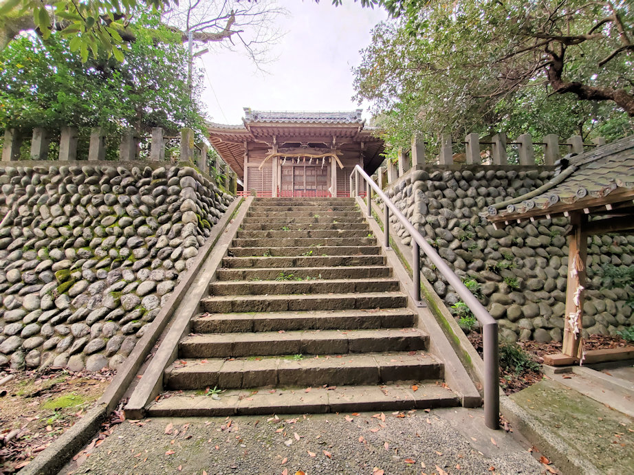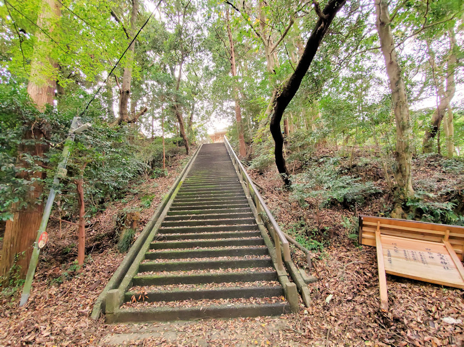10月半ばのとある週末。高天神城北側の駐車場に愛車を停めて、歩き始めたのが午前9時過ぎ。鳥居を抜けると山頂に向かう石段が姿を現す。