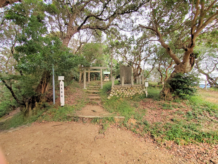 次に反対側に向かう。一旦鞍部に降りて、再び石段を上がっていく。登った先は神社になっている。さらにその向こうに馬場平という少し広い場所があり、周囲を見渡すことができる。ここに立つと確かに高天神城から遠州一帯が見渡すことができ、同地が戦略上の重要拠点であったことが理解できる。