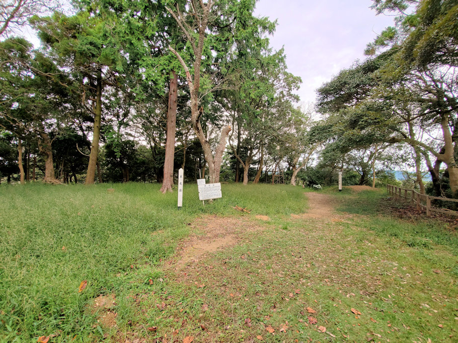 まず左の本丸に向かう。城の北側に位置する本丸は高天神城の中枢部で、標高的にも一番高い所になるという 。本丸といっても天守閣のようなものが残っているはずもなく、本丸趾という標柱が立っているだけだ。