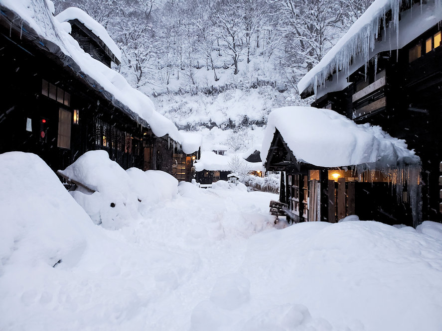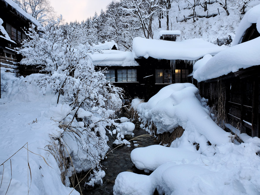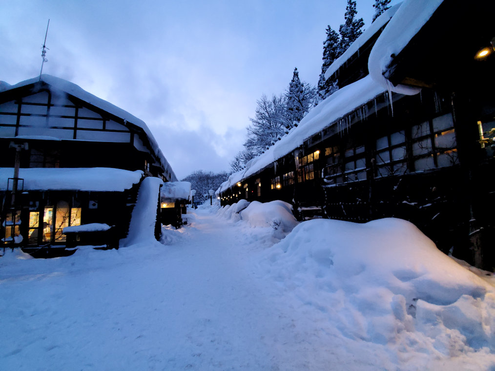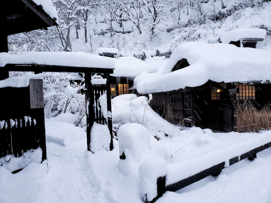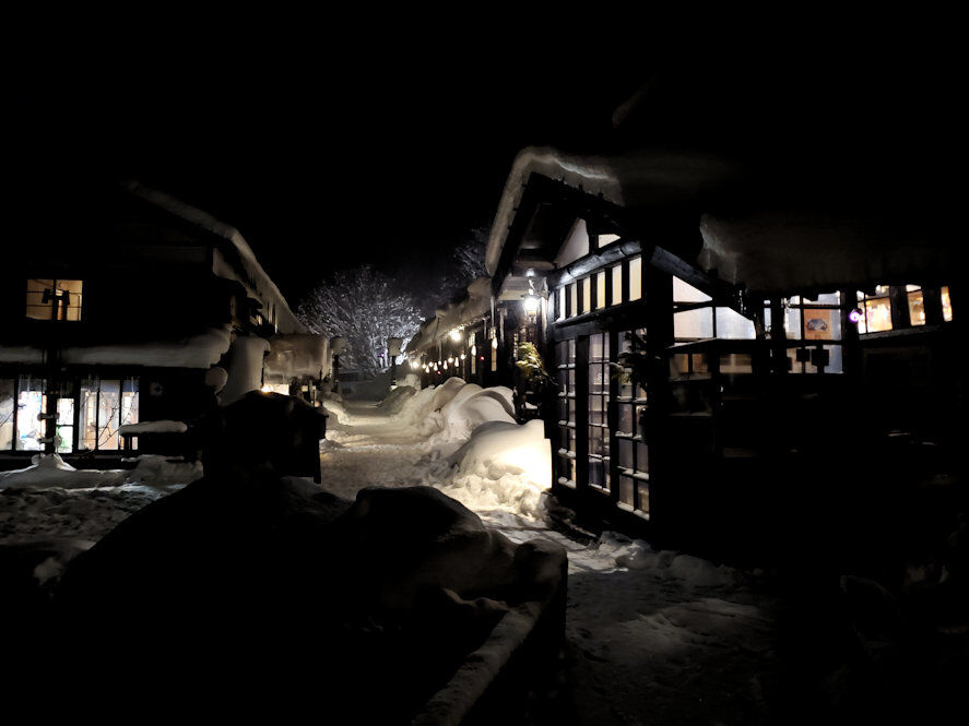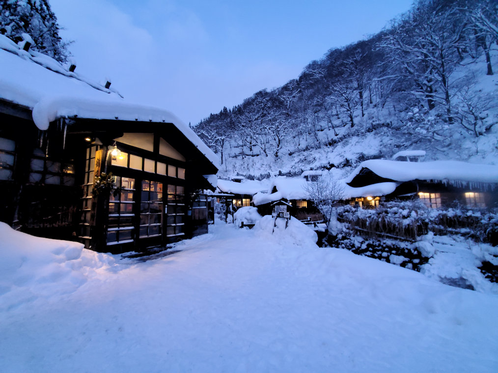 夜になると辺りは雪が降ってきて幻想的な風景が広がってきます。部屋にはTVがないので静かですが(だけでwifiは繋がります)、温泉に入ってみたり、部屋でノンビリ寛いでみたり、はたまたwifiでYou Tubeを見たりして、雪国の夜は更けていきます。