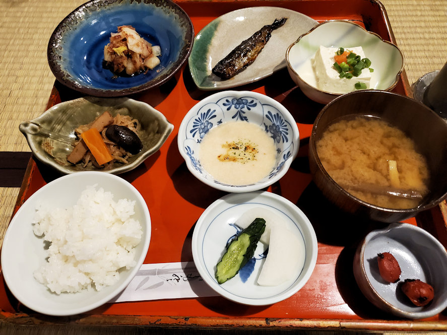 食事は素朴な山里風。決して豪華ではありませんが、美味しいです。特に御飯の美味しさは絶品。地酒を飲み、同宿の人たちと語らいながら食べる食事は実に美味しいです。同宿の人たちも旅慣れた方が多く、そういった意味でも気兼ねなく寛げました。