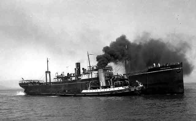 英駆逐艦の放った魚雷計8本のうち、1本ずつが2隻の輸送船に命中した。両方の船は瞬く間に沈没していく。