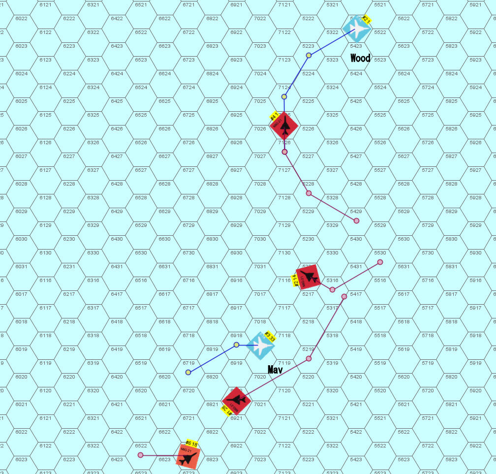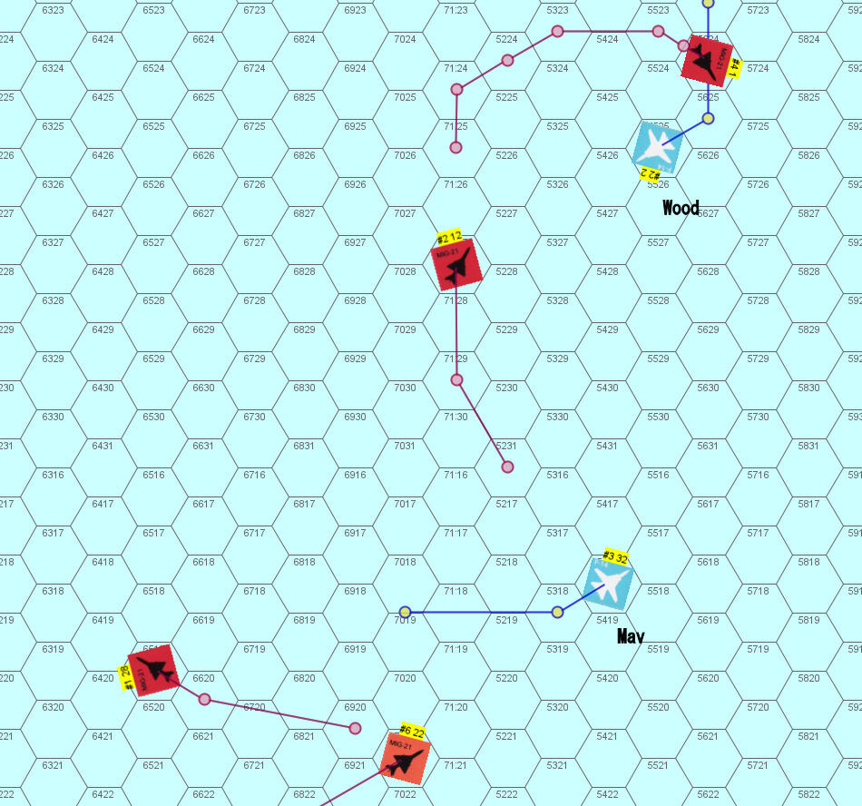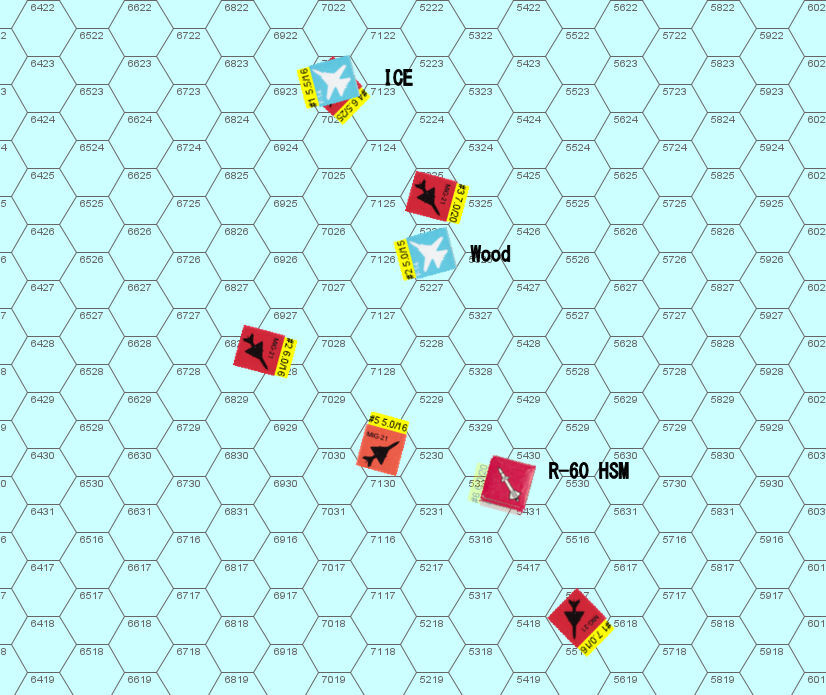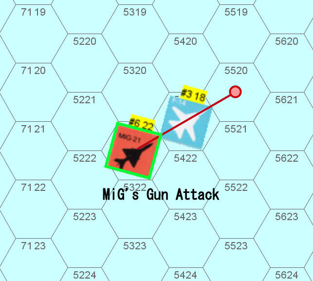 一方の敵側ですが、発射したミサイルは計5発。そのうち2発がハリウッドとアイスマンに命中しました。命中率で言えばトップガン達を上回っています。まあ出目が良かったというのが真相ですが、大型のF-14Aが相手だとミサイルの命中率は10%有利になるというのも効いています。米軍機の損害はすべて赤外線誘導ミサイルによるもの。機銃射撃は4回実施したものの命中はなし。こちらについてはやや運に恵まれなかった感はあります。