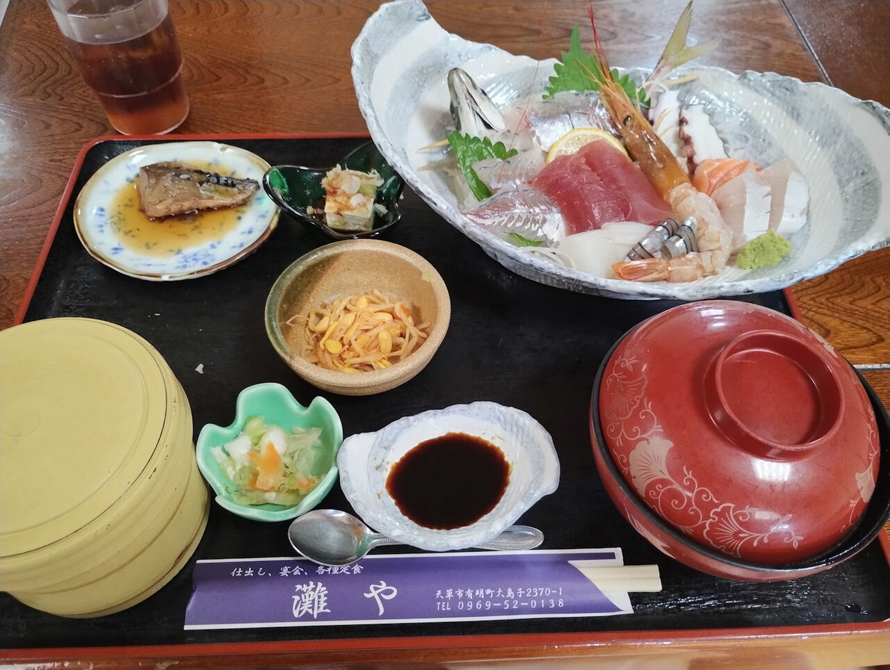「灘や」の刺身定食は、天草の海の幸を丸ごと味わえる贅沢な定食でした。