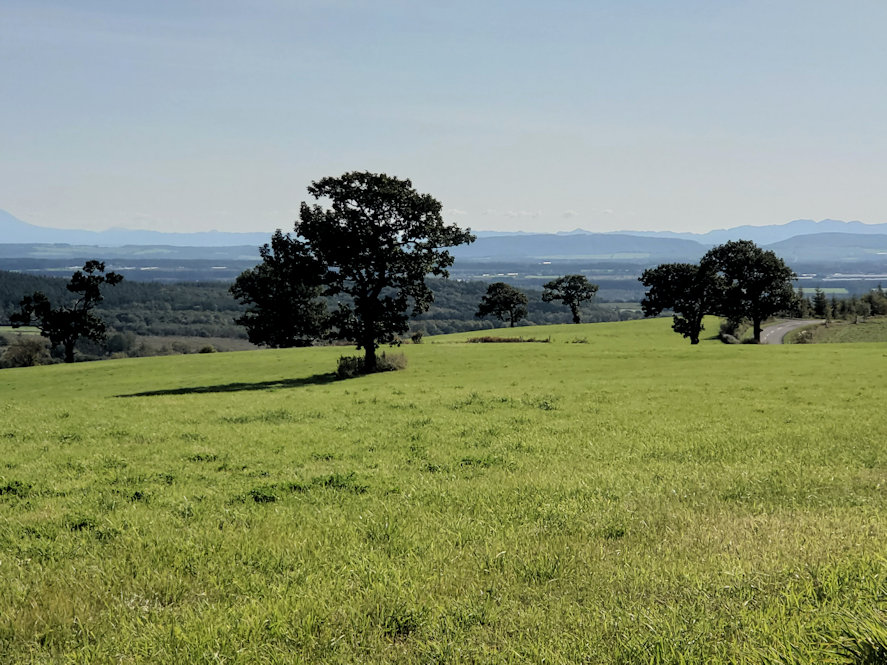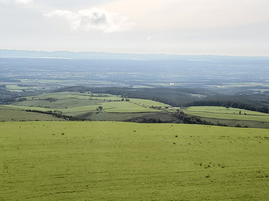 山頂部からは牧場の景観を一望できる他、十勝平野一帯を眼下に見下ろすことができます。天気が良ければ、遠くに阿寒の山々も見えます。