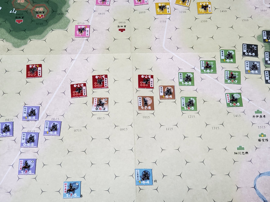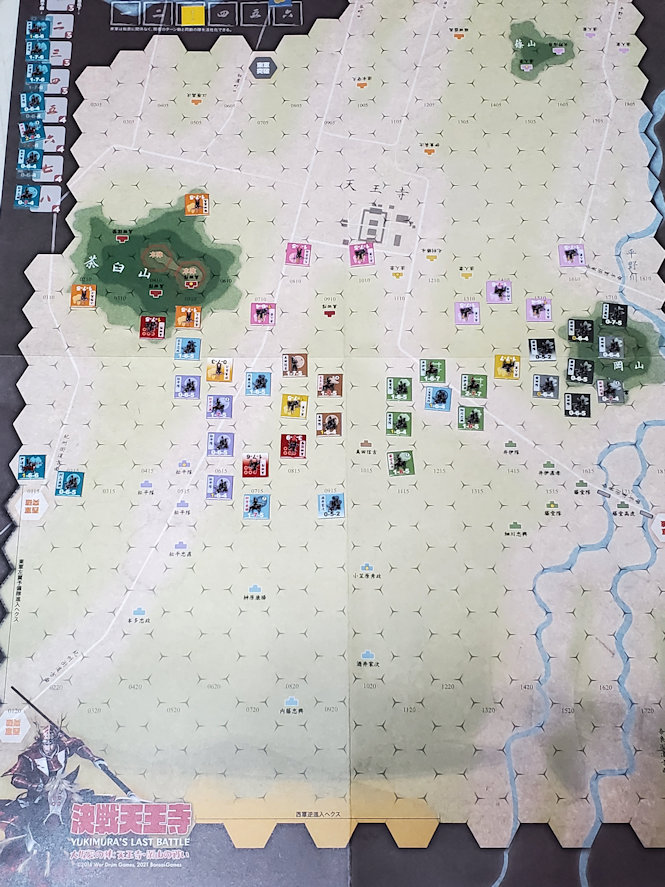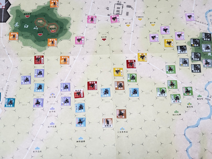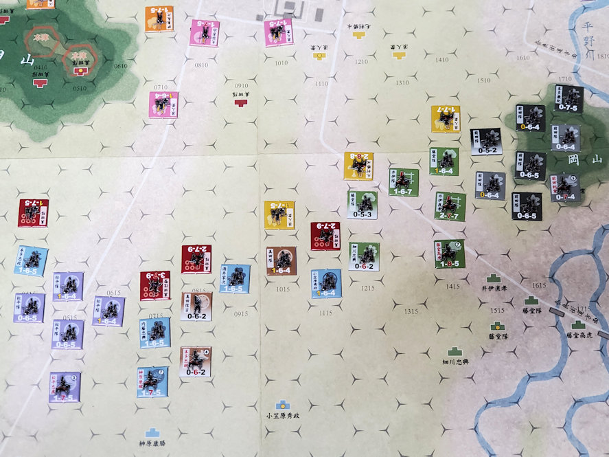 行動数は東軍5、西軍1。先攻は西軍である。既に西軍は勝ち目がないが、一応最後までプレイしてみる。