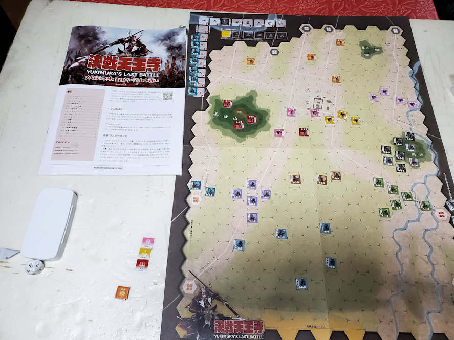 「決戦天王寺」(以下、本作)は、2021年にBonsai Gamesから発表されたシミュレーションゲームだ。テーマは大阪夏の陣。日本人にはお馴染みのテーマで、真田信繁(最近は「幸村」と言わなくなったのがチト寂しい)ら浪人勢が、数を頼む東軍相手に最期の死闘を繰り広げた戦いである。デザイナーのGavin Huさんは中国の方だとのこと。最近何かとキナ臭い日中関係ですが、ウォーゲームの世界では仲良くしたいものである。