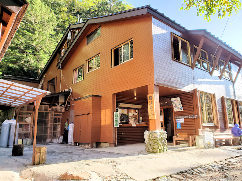 1時間20分ほど歩いて槍沢ロッジに到着。綺麗で気持ち良さそうな山小屋です。